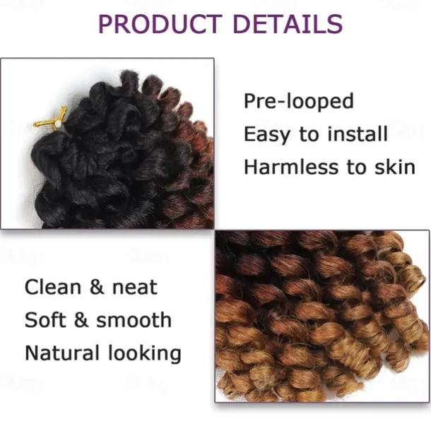 Wand Curl Crochet Braids Hair 8 Inch Jamaican Wand Curl Ombre Crochet Hair Jamaican Bounce Crochet Hair Wand Curl Colored Crochet Braids Ringlet Twist Hair Extension Crochet Hair For Black Women