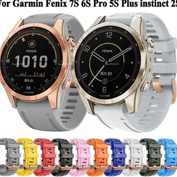 Watch Band for Garmin Fenix 7S Pro 6S 5S Plus Epix Pro 42mm Approach S70 42mm Instinct 2S Descent Mk2S D2 Delta S 20mm Silicone Replacement Strap Quick Fit 20mm Sport Band Wristband