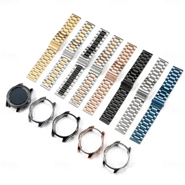Watch Band for Samsung Galaxy Watch 6 5 4 40/44mm Watch 6 Classic 43/47mm Watch 5 Pro 45mm Watch 4 Classic 42/46mm 3 41mm Stainless Steel Replacement Strap with Case Sport Band Wristband