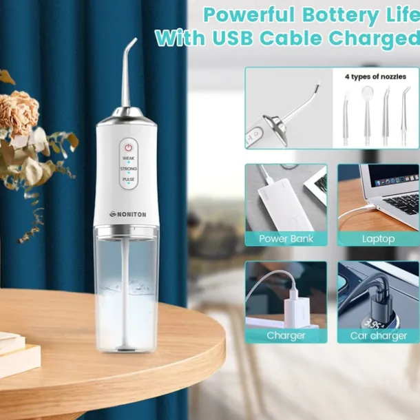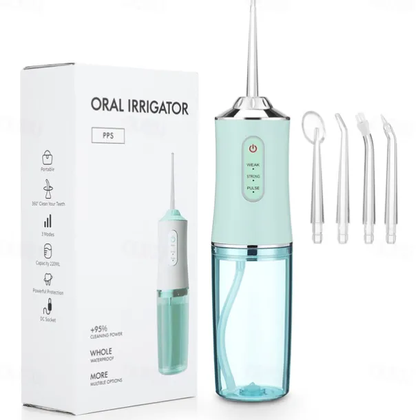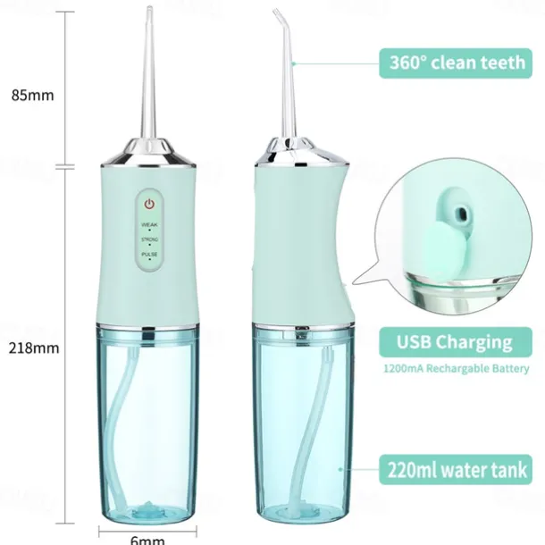 Water Flosser Cordless Dental Oral Irrigator Portable Water Flossers for Teeth with 220ML Detachable Tank Rechargeable IPX7 Waterproof Water Teeth Cleaner Picks with 3 Mode 4 Tips for Family Travel