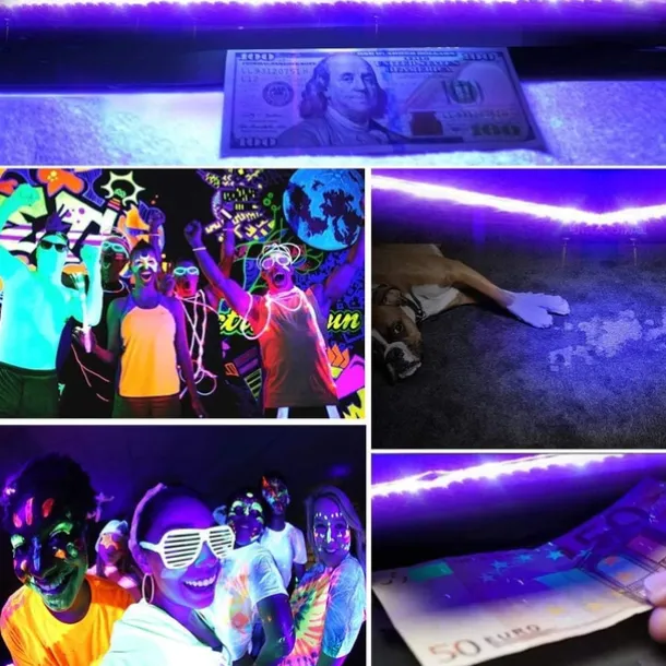 Waterproof Black UV Strip Light, IP65 Purple LED Black Light Fixture Kit 600 LED Light Strips with 12V Power Supply for Outdoor and Indoor Halloween Luminous Neon Lights Party Cabinets Posters Boats