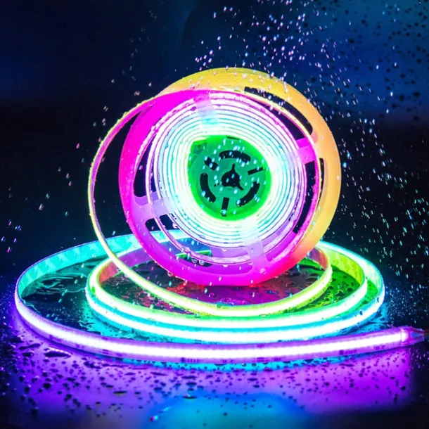 Waterproof COB LED Strip Light, RGB Intelligent IC Strip 16ft 5M DC24V Flexible LED Tape Light WS2811 Addressable RGB Ribbon Suitable Party/Home DIY Lighting Projects (Excluding Power and Controller)