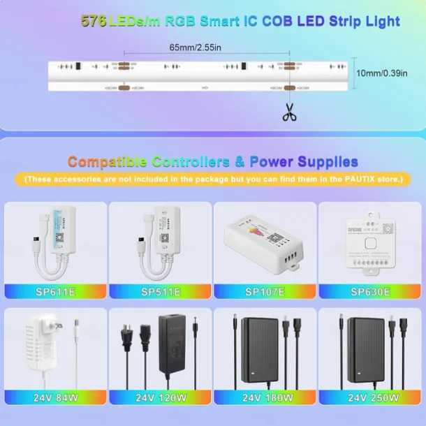 LED Beads Quantity: 1440-2880, Light Color: RGBIC (Addressable Dream Color), Power Supply: No Plug – DC24V, Type: RGB Strip Lights, Style: LED Strip Light, Features: Individual Addressable, Waterproof, Self-adhesive, Holiday, Party, Quantity: 1PC, Wattage (W): 24, 50, Voltage (V): 24, Length: 2.5m, 5m, CRI: >85, LED Type: COB, Batteries Included: No, IP Rating: IP55, IP20, Control Mode: Mode Switching, Suitable Rooms: Indoor, Width: 10mm, Length Range: < 5m (16.4ft), Occasion: Balcony / Terrace, Outdoor, Indoor, Bedroom, Prom / Ceremony,