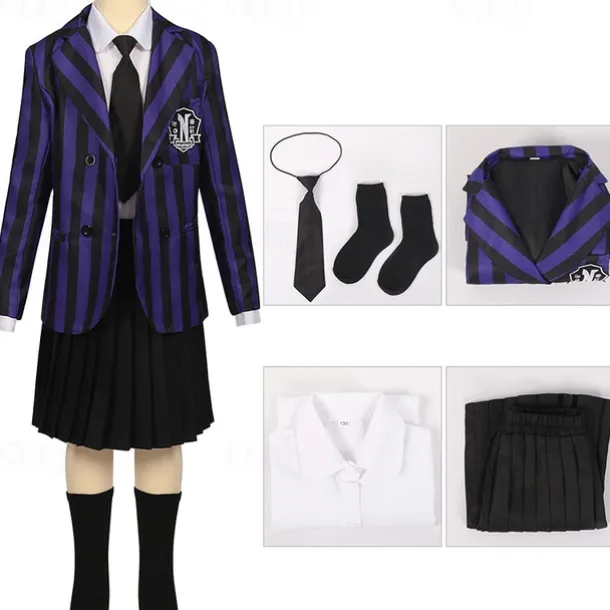 Wednesday Addams Addams family Nevermore Academy Enid Sinclair Costume School Uniform Fancy Dress Movie Cosplay for Girls’ Kid’s Halloween Carnival Performance Party