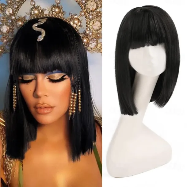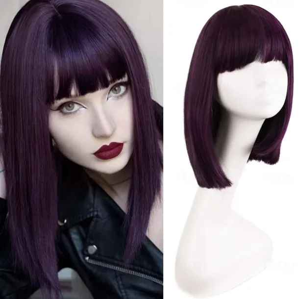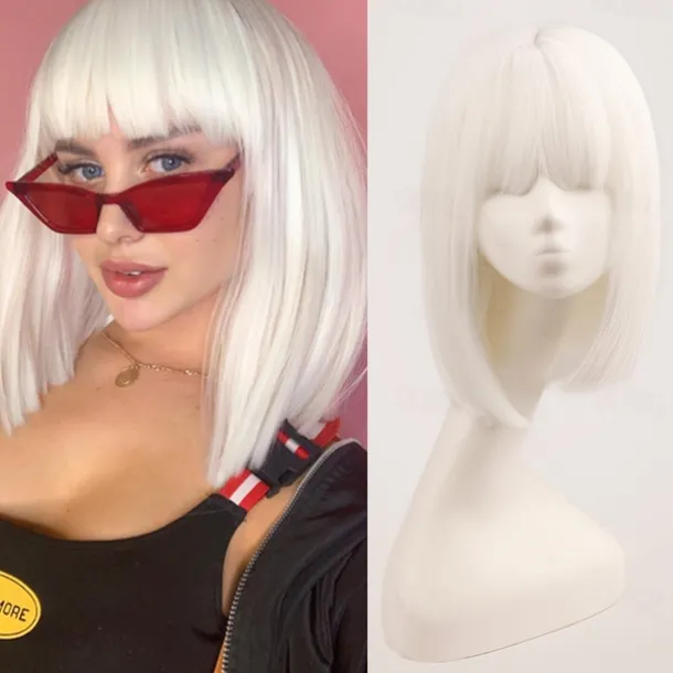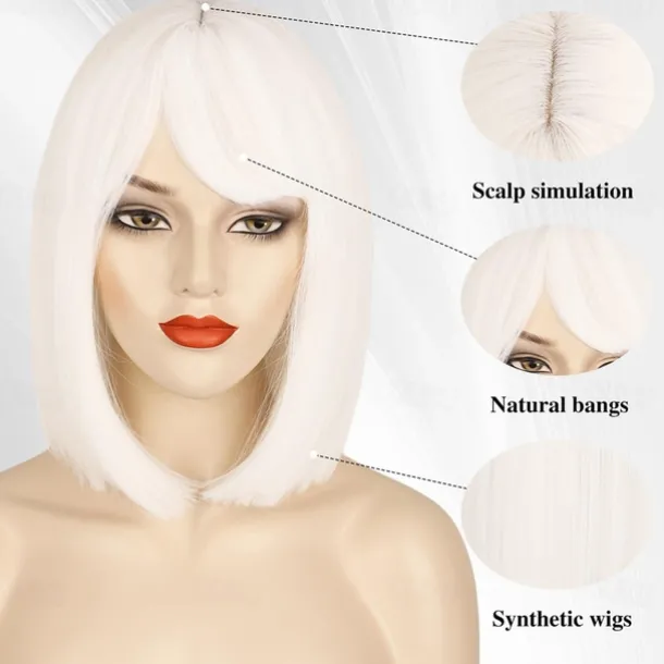 White Bob Wigs for Women short white wig with bangs Straight Bob Wigs Synthetic Cosplay Daily Party Wig Halloween Wigs