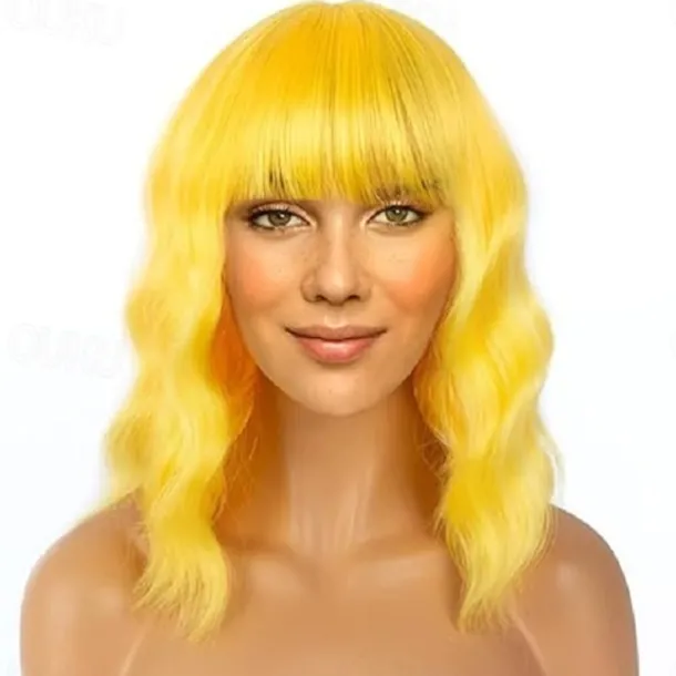 Wig Short Bob Wigs with Bangs for Women Loose Wavy Hair Shoulder Length Wig Synthetic Colorful Wigs Halloween Cosplay Party Wigs