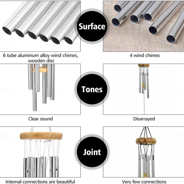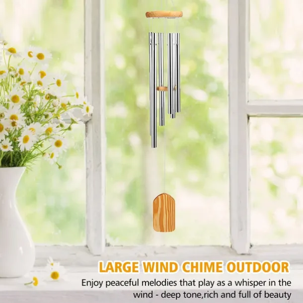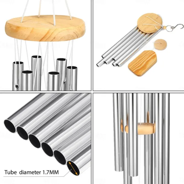 Wind Chimes with 6 Aluminum Tubes Wooden Wind Bell Memorial Wind Chimes Best Gift Chimes Decor for Garden Patio Outdoor Hanging Decor