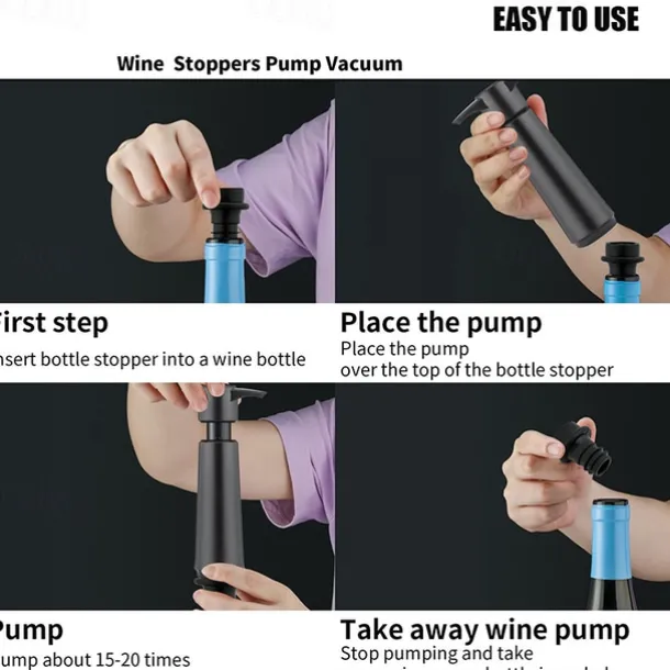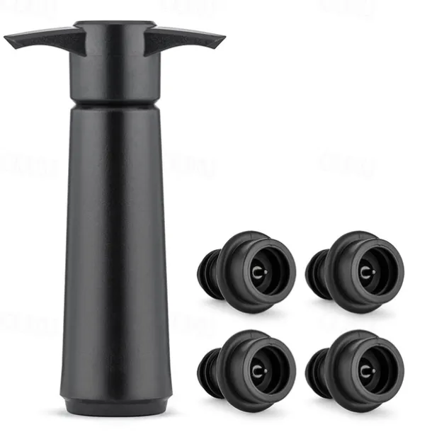 Wine Saver Vacuum Pump with 4 Wine Stoppers Preserver Air Pump Wine Sealer Corks for Red Wine Bottle Wine Rubber Barware Vacuum Stoppers and Preserver Reusable Bottle Sealer Keeps Wine Fresh