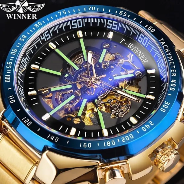 Winner Top Brand Automatic Mechanical Gold Watch Men Big Case Luxury Skeleton Luminous Military Business Blue Waterproof Watch