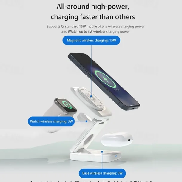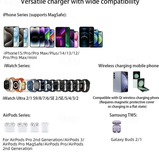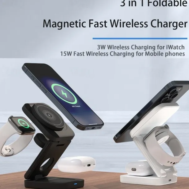 Wireless Charger 15 W Output Power Wireless Charging Station CE Certified Fast Wireless Charging MagSafe Universal For iPhone 14/13/12/11 Pro Max Universal Cellphone Gear Fit 2 R360 Apple Watch