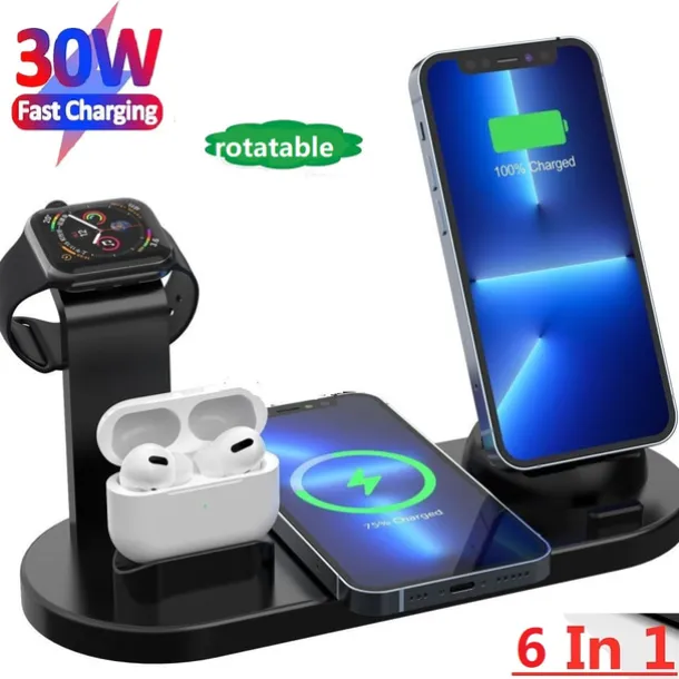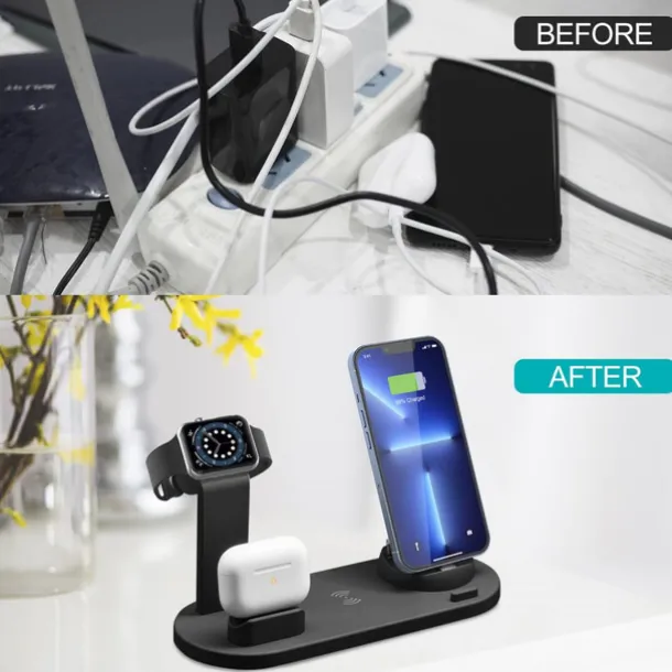 – 6 in 1 WIRELESS CHARGER STAND: Conveniently charge your iPhone, Apple watch, and Airpods all at once. Compatible with a wide range of iPhone models including iPhone 14, 13, 12, XR, X, XS, and more. Also compatible with iWatch 6, 5, 4, 3, 2, 1, SE, and Airpods Pro and 2.