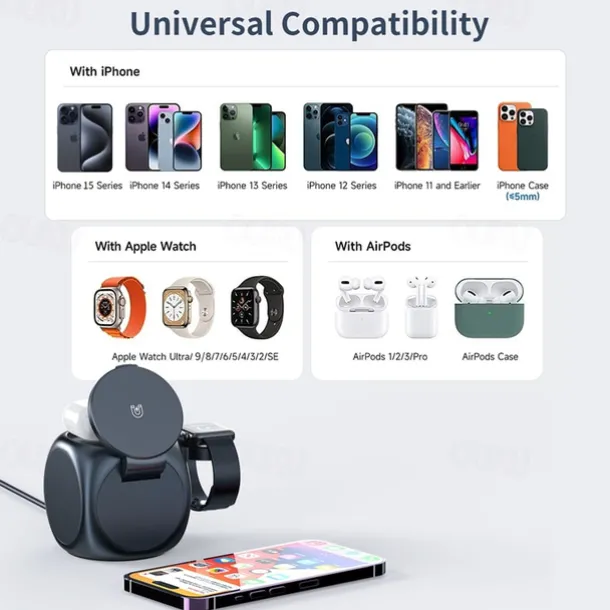 Wireless Charger Wireless Charging Station CE Certified Magnetic 3 in 1 For Smart Watch Compatible with any wireless charging enabled devices