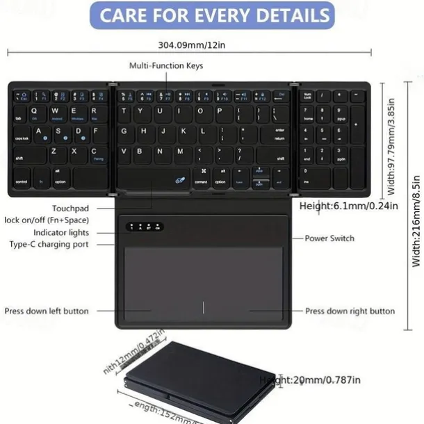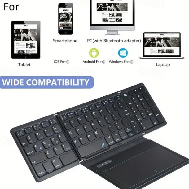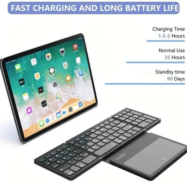 Wireless Rechargeable BT Keyboard With Touchpad & Numeric Keypad Perfect for Phone & Tablet
