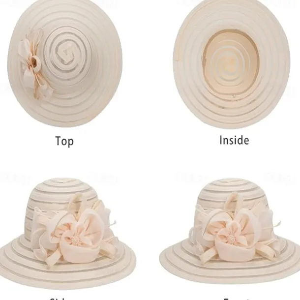 Women-Organza-Kentucky Sun Hats-Summer-Wide-Brim-Flower-Church-Hats for Tea Party Bridal Wedding Dress-Derby Hat