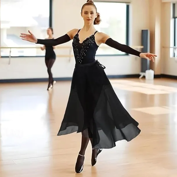 Women’s Ballet Wrap Dress Chiffon Dance Wrap Skirt with Adjustable Waist Tie Gymnastics and Ballet Dance Skirts for Women Black Dancewear