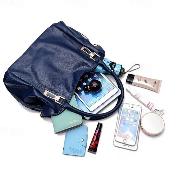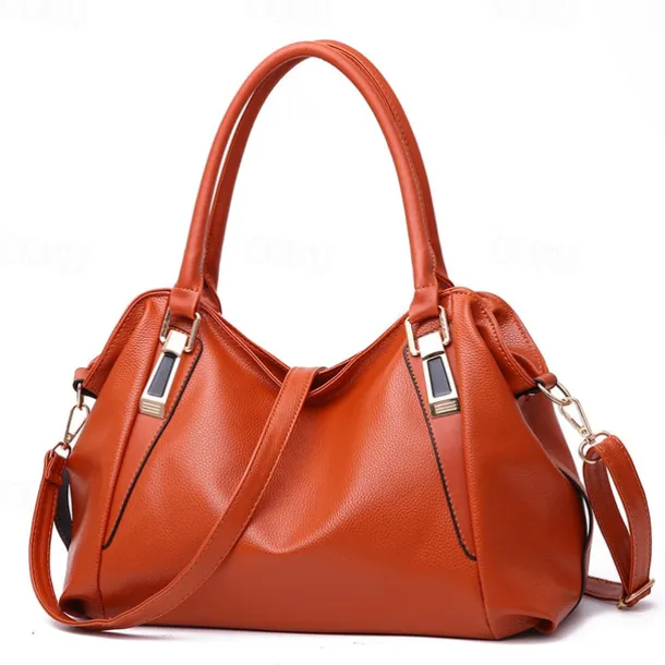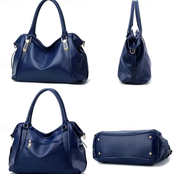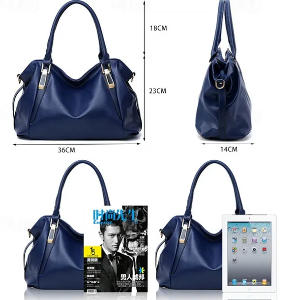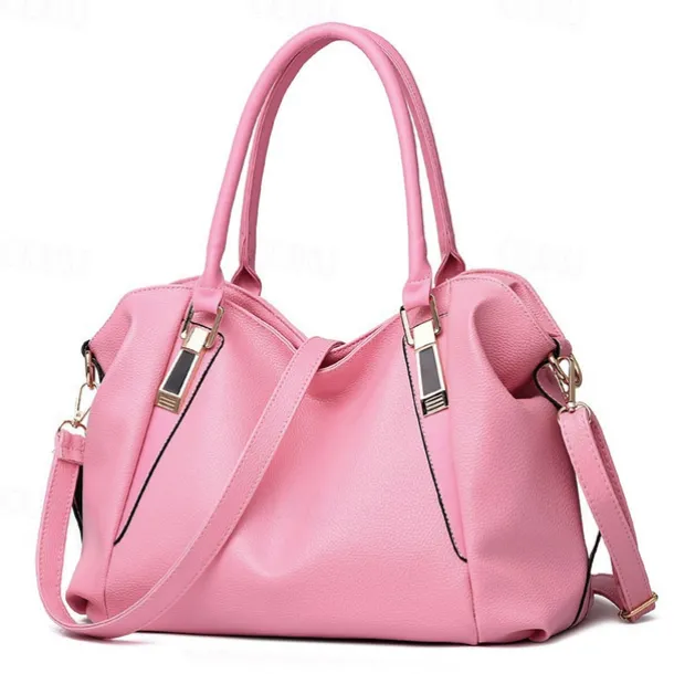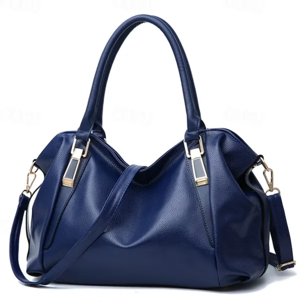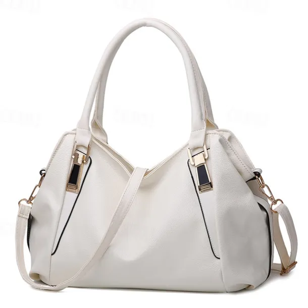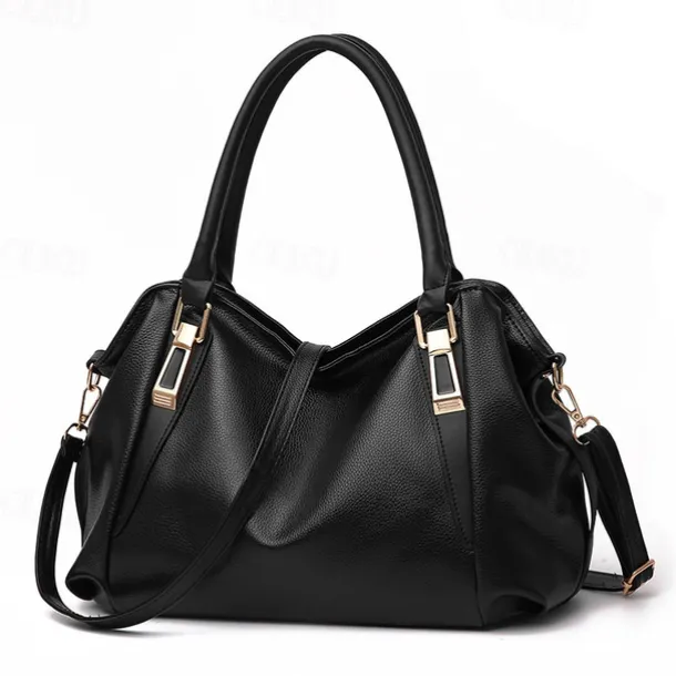 Women’s Black Faux Leather Handbag with Top Handles and Shoulder Strap, Elegant Large-Capacity Tote Bag for Work, Travel, and Daily Office Use