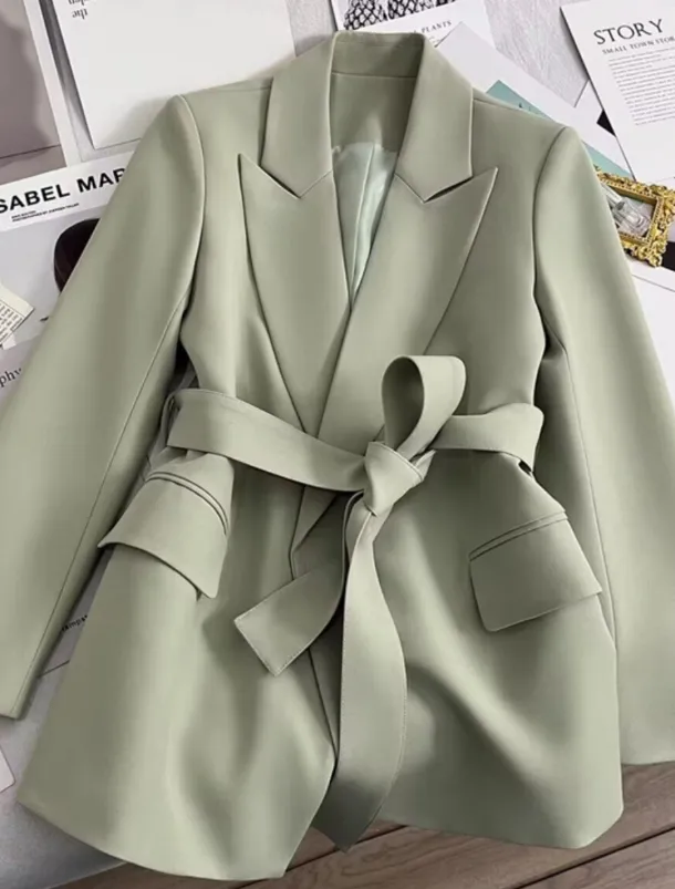 Women’s Blazer Comfortable Breathable Lace up Pocket Casual Plain Office Street Casual Daily Wear Open Front Regular Turndown Regular Fit Long Sleeve Outerwear Black Green Beige Summer Fall
