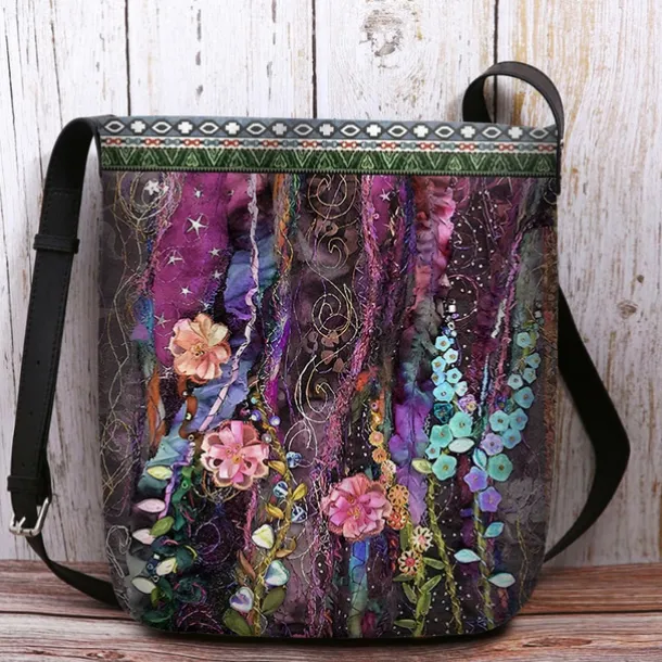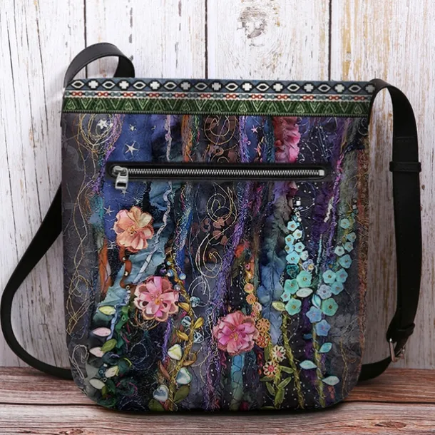 Women’s Bohemian Floral Embroidered Crossbody Bag, Artistic Handmade Shoulder Bag with Colorful Flower Design, Perfect for Casual and Festival Wear