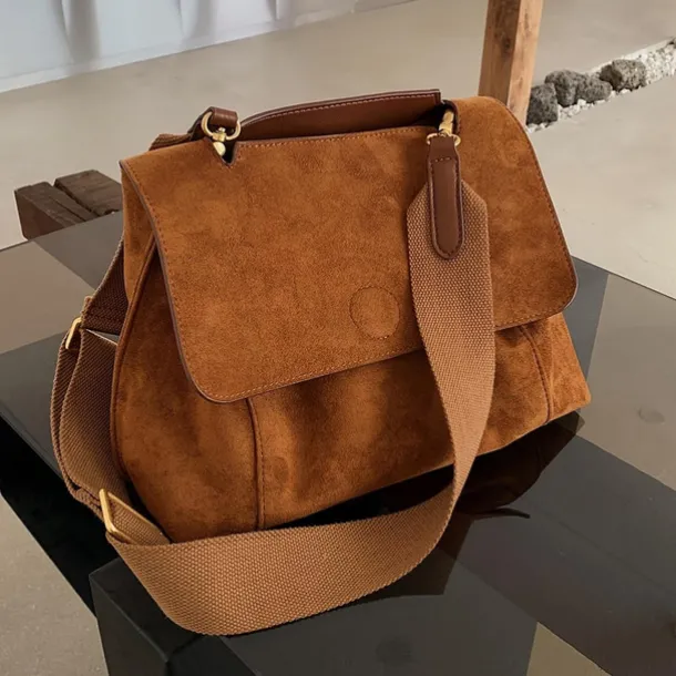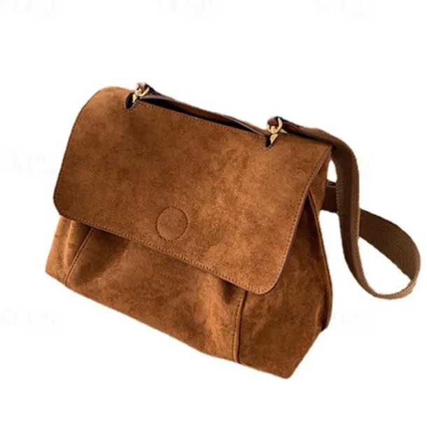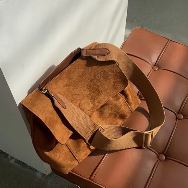 Women’s Brown Suede Messenger Bag with Adjustable Strap – Casual Shoulder Bag for Work, Travel, and Everyday Use