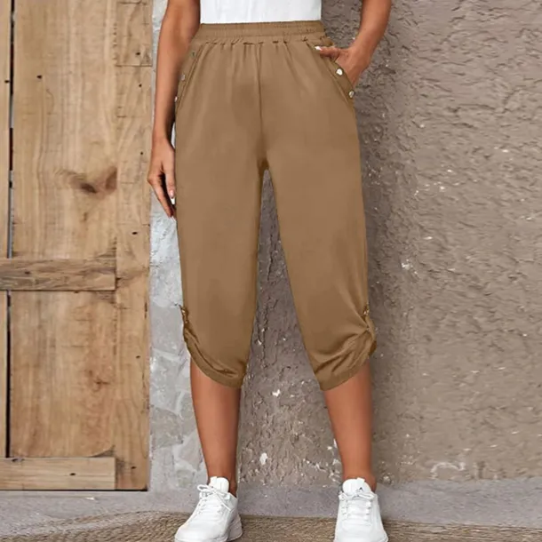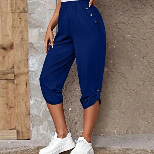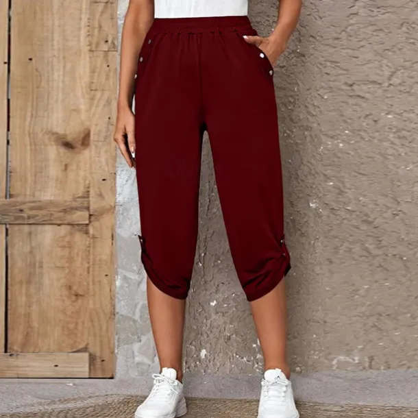 The Women’s Capri Shorts in Black Wine and Blue offers a fashionable and casual style perfect for daily wear These calf-length shorts available in S to 2XL feature convenient side pockets and are made with comfortable micro-elastic polyester fabric for a regular fit