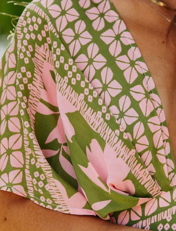 – Features a unique split design and trendy print