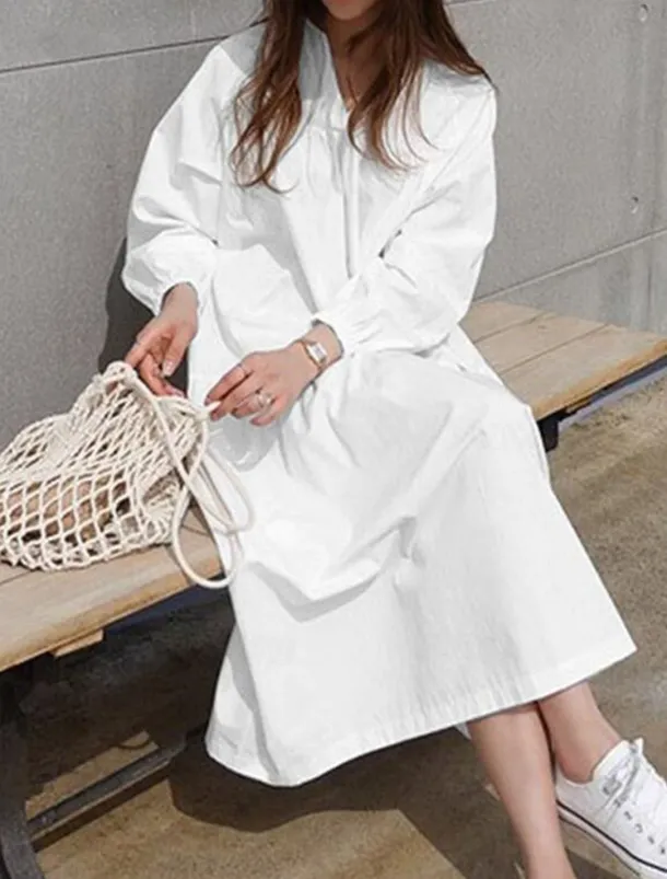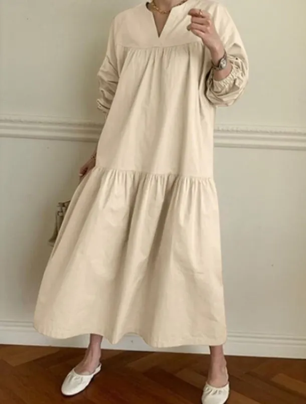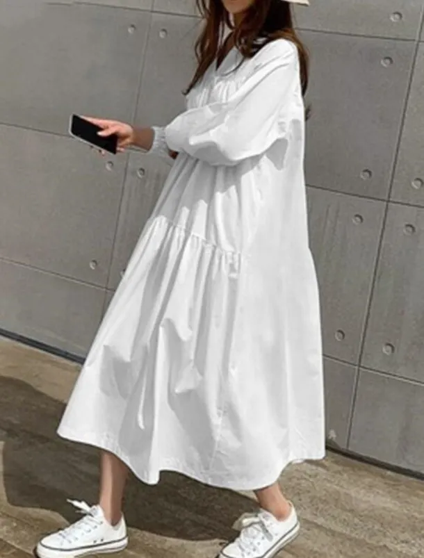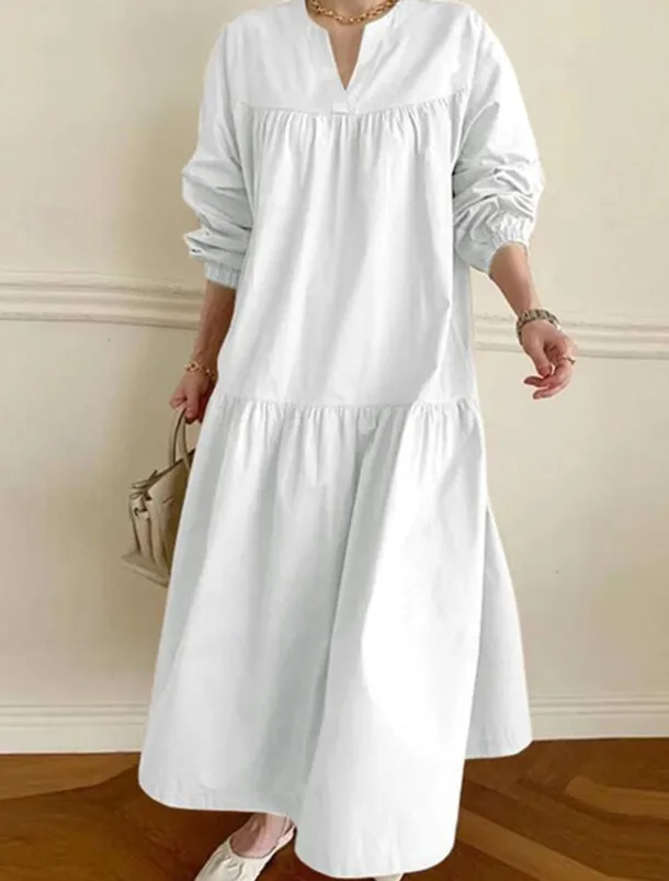 Women’s Casual Dress Maxi Dress Ruffle Hem Casual Split Neck Long Sleeve Black White Khaki Color