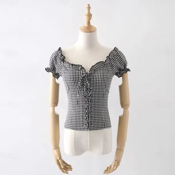 Women’s Checkered Bavarian Oktoberfest Blouse Shirt for Lederhosen Dirndl Traditional Costume Beer Carnival