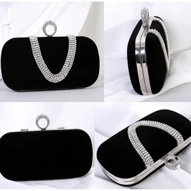 Women’s Clutch Evening Bag Wristlet Clutch Bags Velvet Party Valentine’s Day Bridal Shower Rhinestone Crystals Chain Large Capacity Lightweight Durable Solid Color Black Red Blue