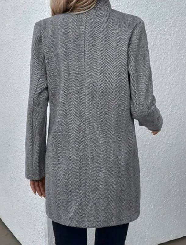 Women’s Coat Work Pocket Zipper Solid Color Simple Outerwear Fall Gray