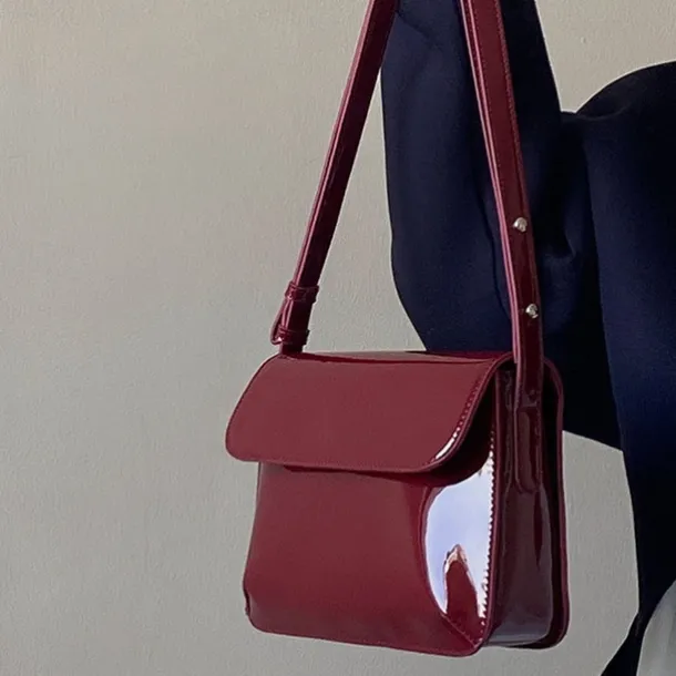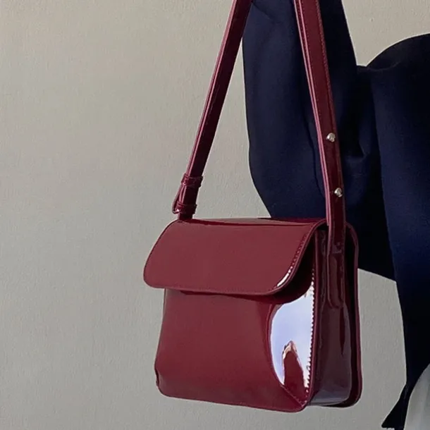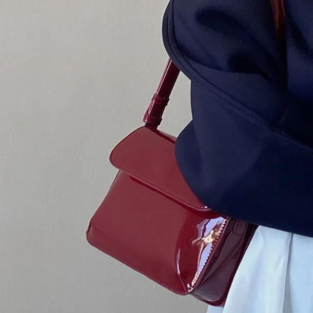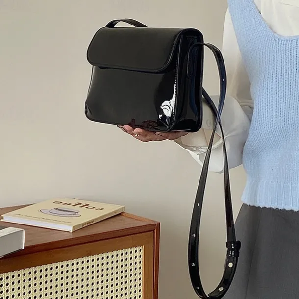 Women’s Crossbody Bag Patent Leather PU Leather Office Daily Waterproof Breathable Durable Solid Color Black Red