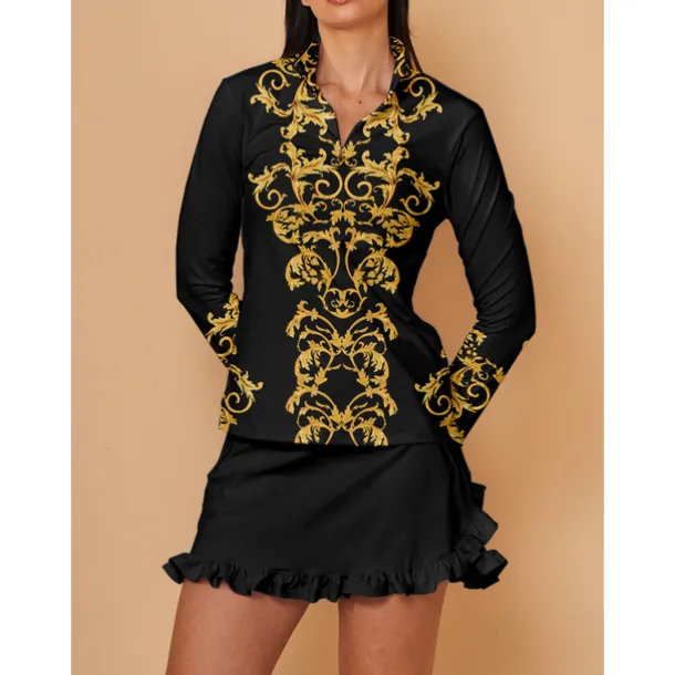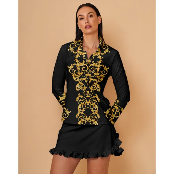 Women’s Golf Polo Shirt Black Long Sleeve Top Ladies Golf Attire Clothes Outfits Wear Apparel