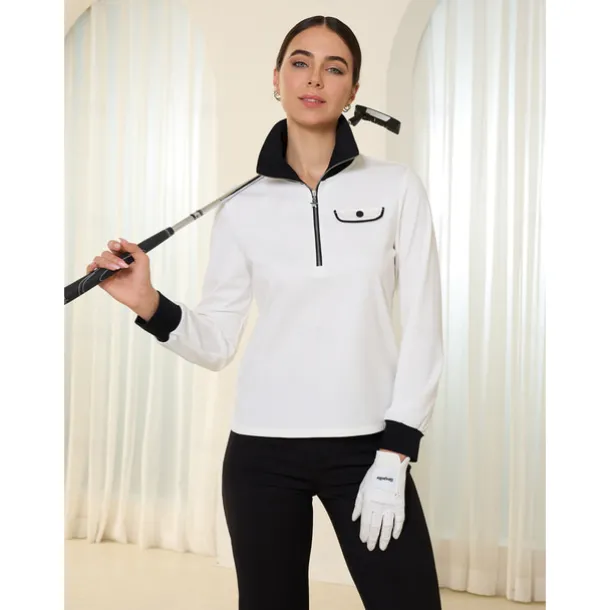 Women’s Golf Pullover Sweatshirt White Long Sleeve Top Ladies Golf Attire Clothes Outfits Wear Apparel