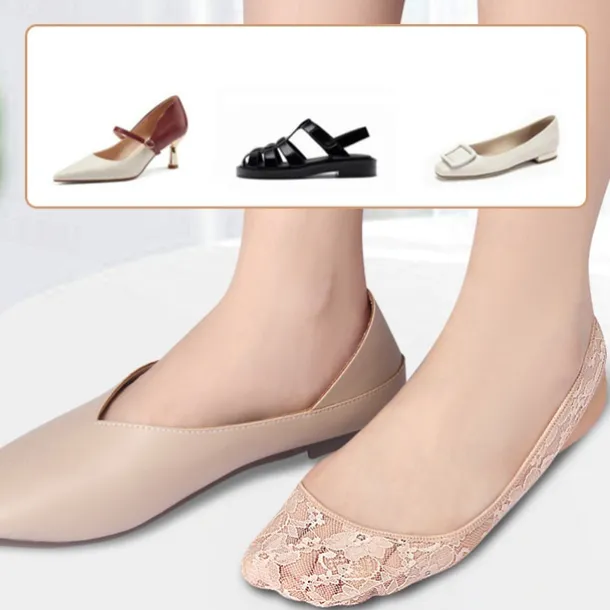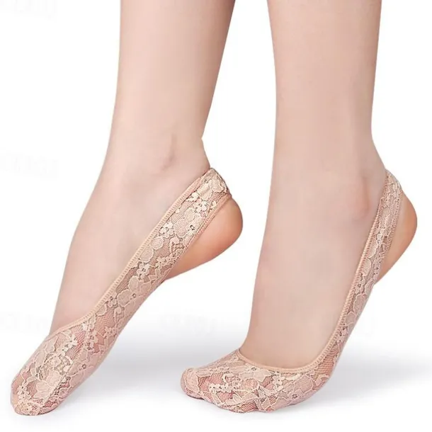 Women’s Lace No-Show Socks – Non-Slip Invisible Footies with Silicone Grip – Ultra-Thin Breathable Ballet Flats Liner Socks for Dress Shoes