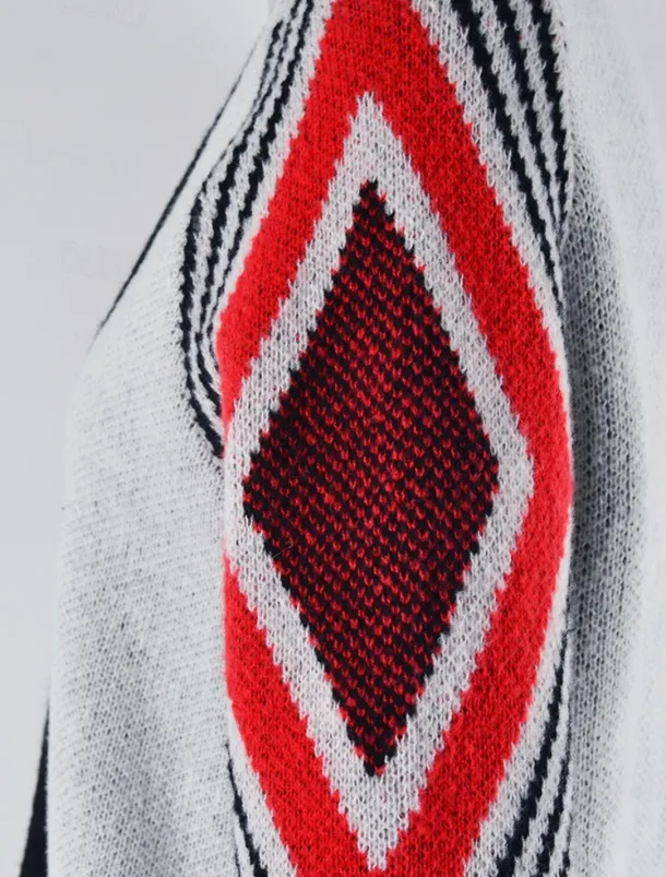 – Stay cozy and stylish in our chic geometric pattern cardigan