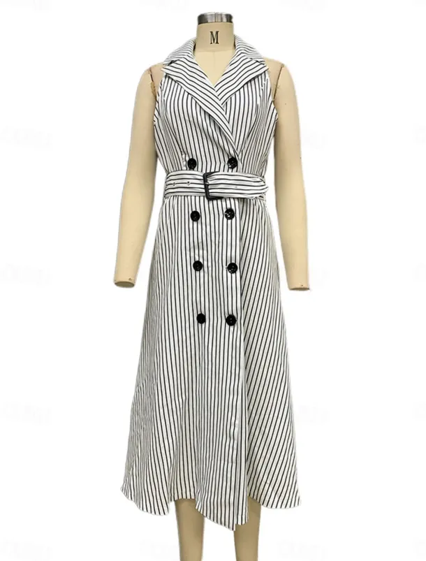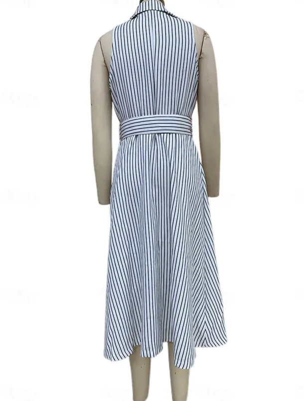 Women’s Long Dress Maxi Dress Blazer Dress A Line Dress Elegant Stylish Formal Work Daily Date Regular Fit Stripe Sleeveless Shirt Collar White Summer Spring Fall