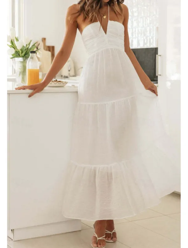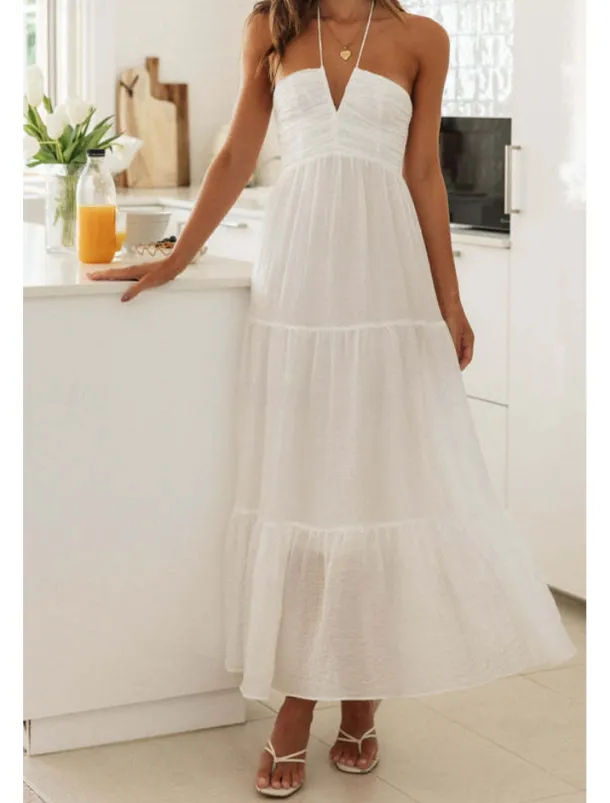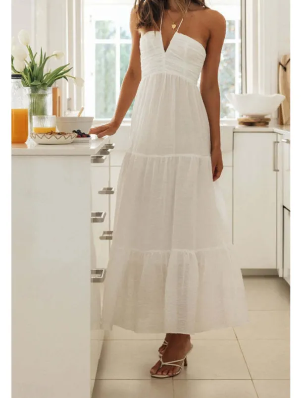 – Stay cool and stylish this summer in our sleeveless chiffon white dress.