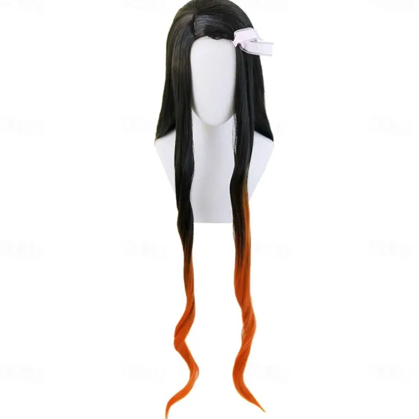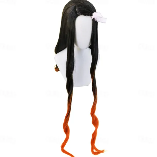 Women’s Nezuko Cosplay Wig Long Black Gradient Orange Wave Hair Halloween Wigs