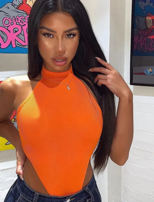 – The halter neck adds a stylish and alluring touch to the overall look.