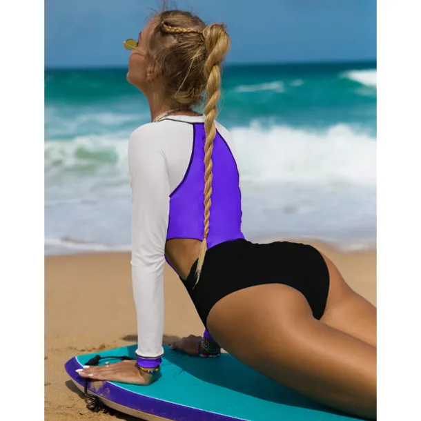 Women’s One Piece Swimsuit Cut Out Bodysuit Bathing Suit Patchwork Swimwear Blue Black UV Sun Protection Breathable Quick Dry Long Sleeve – Swimming Surfing Beach Autumn / Fall Spring / Summer