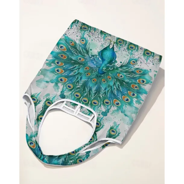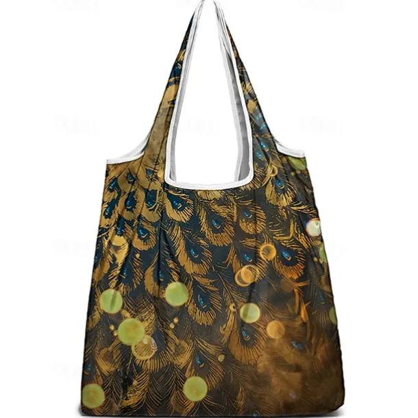Women’s Peacock Print Folding Tote Bag – Large Capacity Reusable Shopping Bag with Elegant Watercolor Design, Lightweight and Stylish, Great for Daily Use, Travel and Eco-friendly Shopping