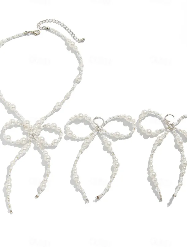 Women’s Pearl Bow Necklace and Drop Earrings Set – Elegant Statement Jewelry for Fashion Parties and Cocktail Events