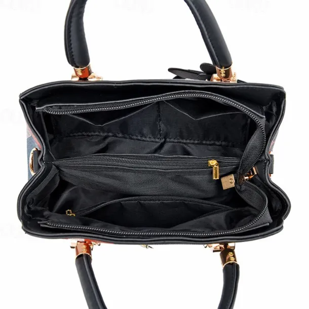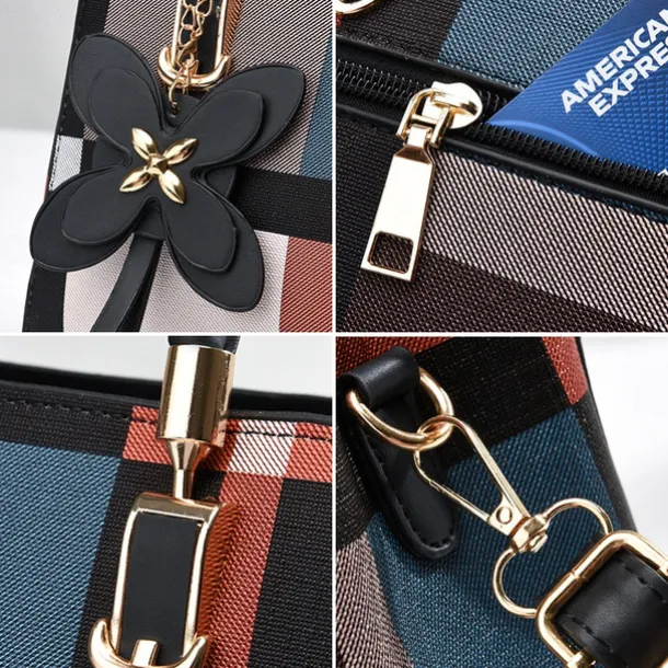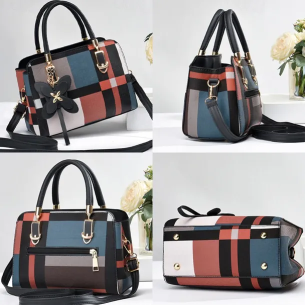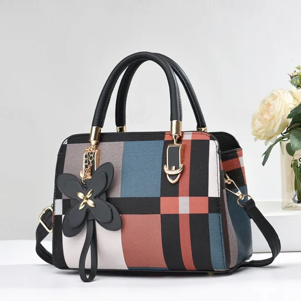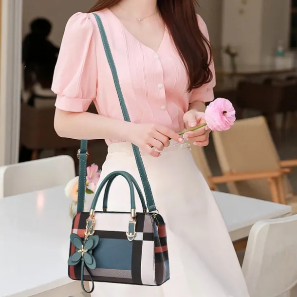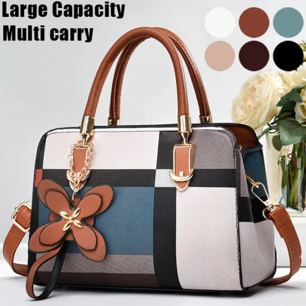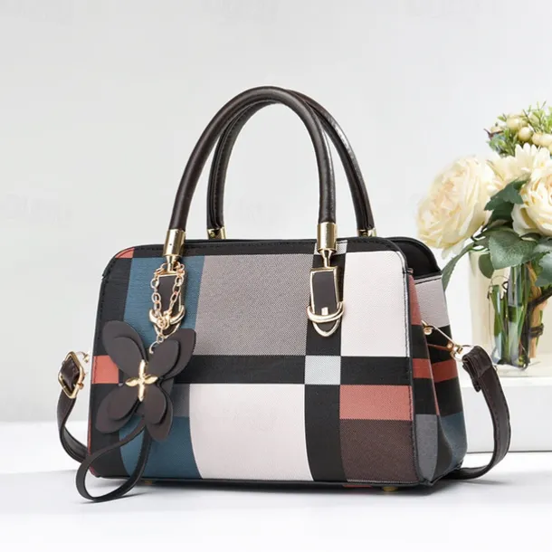 Women’s Plaid Handbag with Faux Leather Handles and Shoulder Strap, Structured Top Handle Bag with Butterfly Charm for Office, Shopping and Daily Use