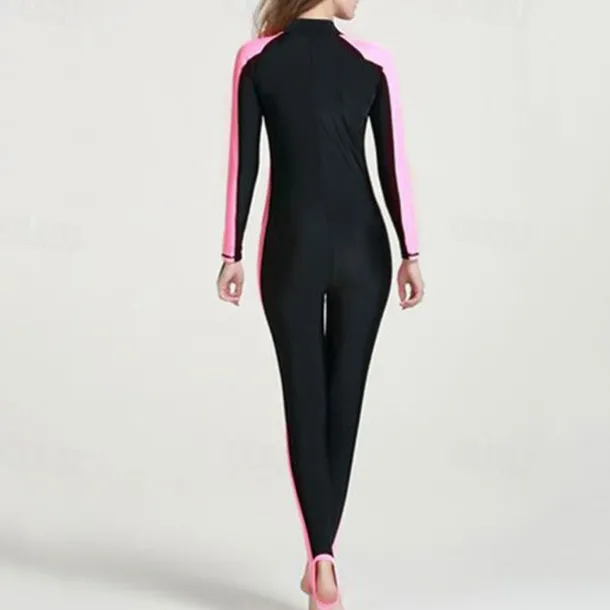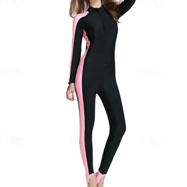 Women’s Rash Guard One Piece Swimsuit Lightweight Long Sleeve Bodysuit Bathing Suit Front Zip Swimming Surfing Beach Water Sports Patchwork Summer Spring Autumn