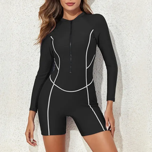 Women’s Rash Guard One Piece Swimsuit Lightweight Long Sleeve Bodysuit Bathing Suit Front Zip Swimming Surfing Beach Water Sports Patchwork Summer Spring Autumn