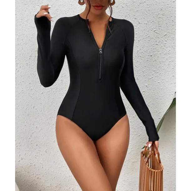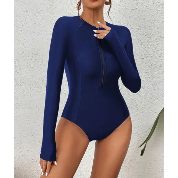 Women’s Rash Guard One Piece Swimsuit Lightweight Long Sleeve Bodysuit Bathing Suit Front Zip Swimming Surfing Beach Water Sports Solid Colored Summer Spring Autumn