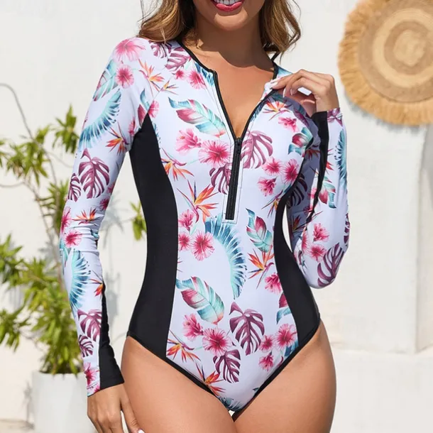 Women’s Rash Guard One Piece Swimsuit Lightweight Sleeveless Bodysuit Bathing Suit Front Zip Swimming Surfing Beach Water Sports Printed Summer Spring Autumn