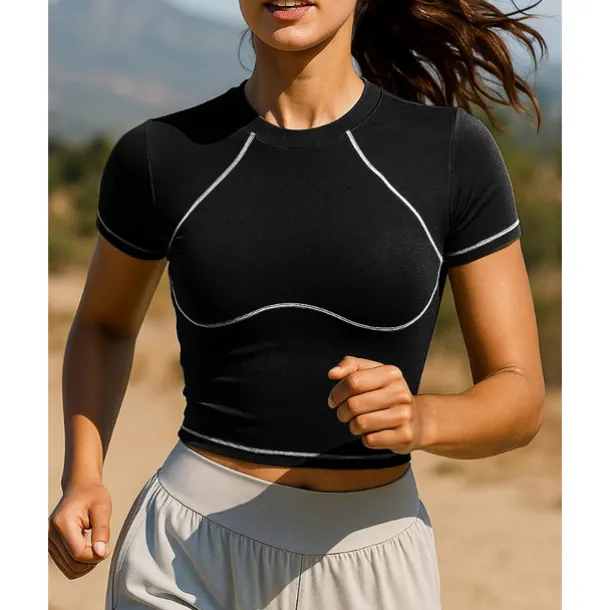 Women’s Running Top Slim Short Sleeve Top Athleisure Cotton Breathable Quick Dry Lightweight Tennis Golf Running Sportswear Activewear Color Block Black White Light Grey