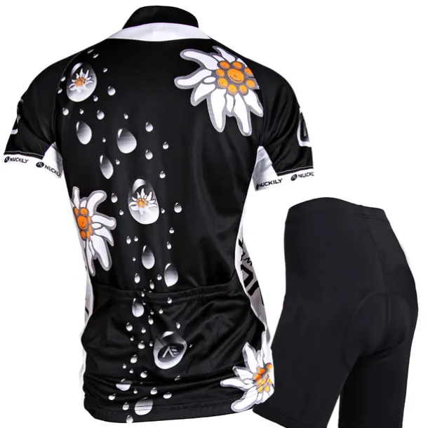 Women’s Short Sleeve Cycling Jersey with Shorts Summer Nylon Elastane Polyester White Black Floral Botanical Funny Bike Shorts Jersey Padded Shorts / Chamois Waterproof 3D Pad Breathable Ultraviolet