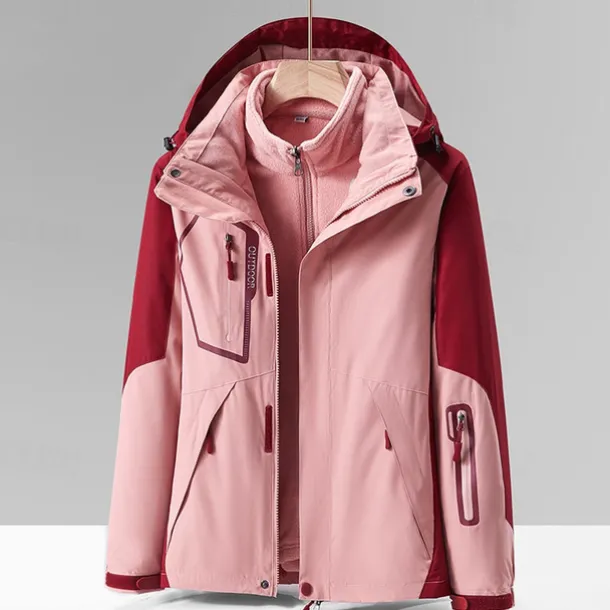 Women’s Softshell Jacket Hiking Jacket Winter Outdoor Windproof Water Resistant 3-in-1 Jacket Fleece Jackets Windbreaker Jacket Traveling Black Ivory Pink Green