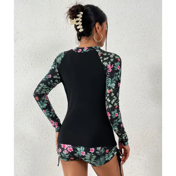 Women’s Swim Shorts Rash guard Swimsuit Lightweight Long Sleeve Swimwear Swimsuit 2 Piece Front Zip Swimming Surfing Beach Water Sports Floral Printed Summer Spring Autumn
